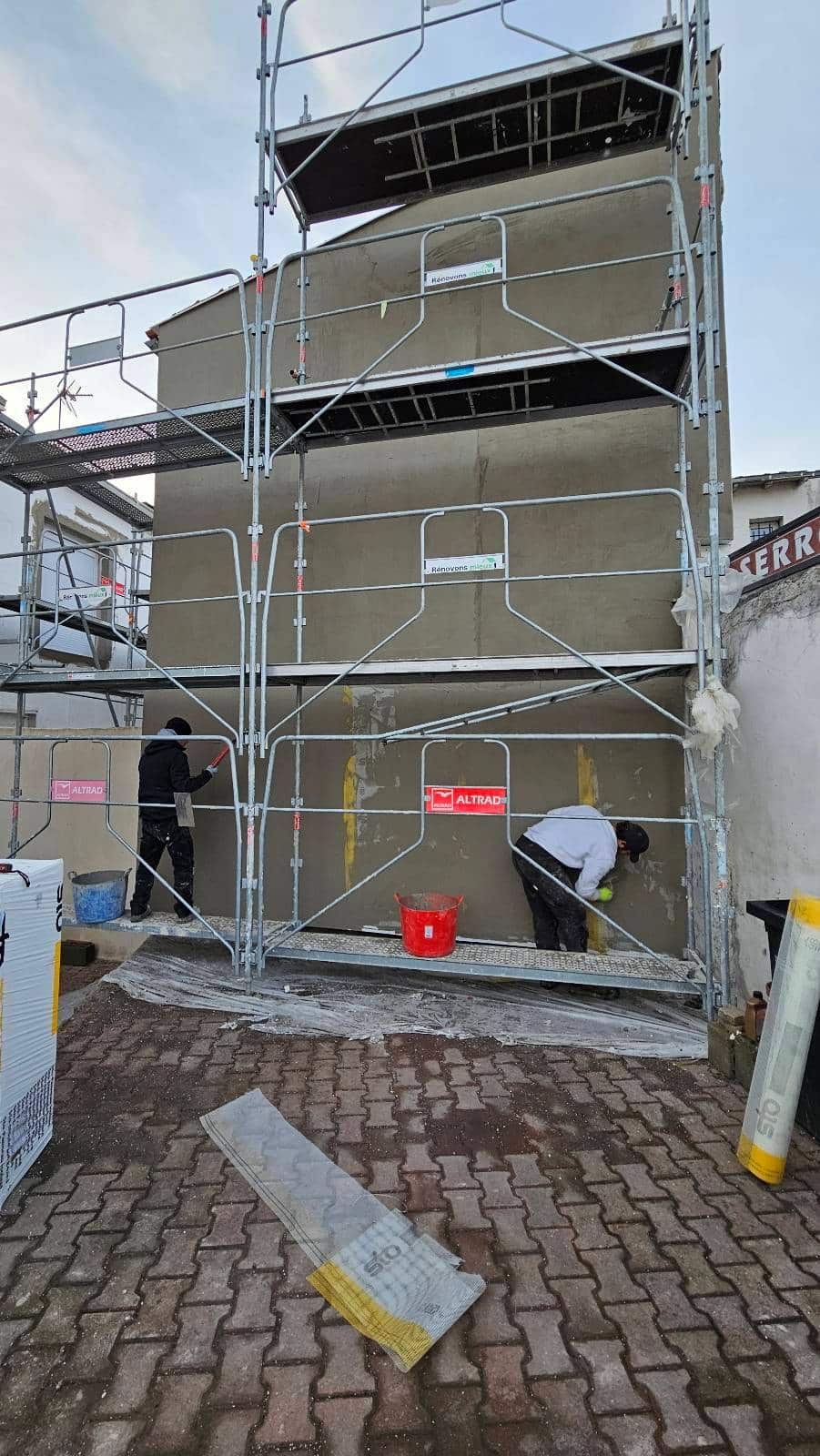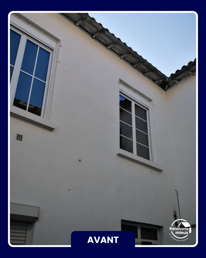 Sur cette maison à étage située à La Rochelle (17000), nous avons isolé 121 m² de façades par l’extérieur. Un échafaudage a été monté sur tout le pourtour afin de travailler en sécurité et traiter chaque mur sans contrainte.