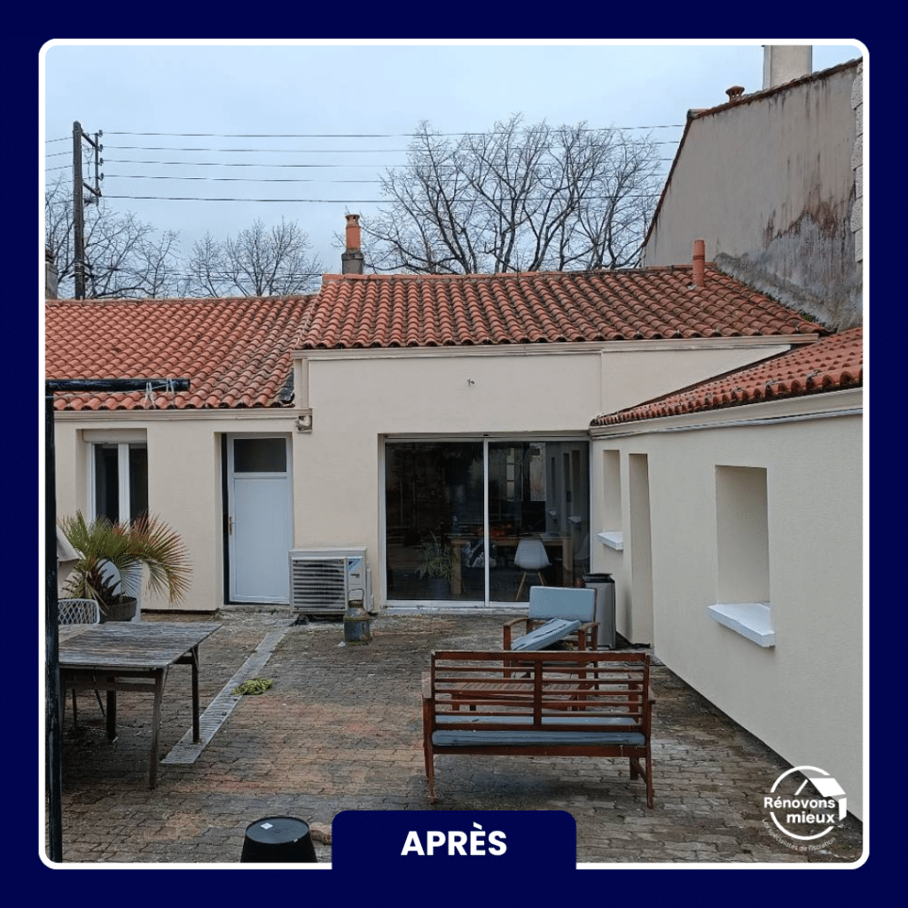 Sur cette maison de plain-pied à Rochefort (17300), nous avons isolé 47 m² de façades par l’extérieur. Les murs donnaient directement sur l’extérieur, sans protection particulière, avec des variations de température sensibles dans le séjour.