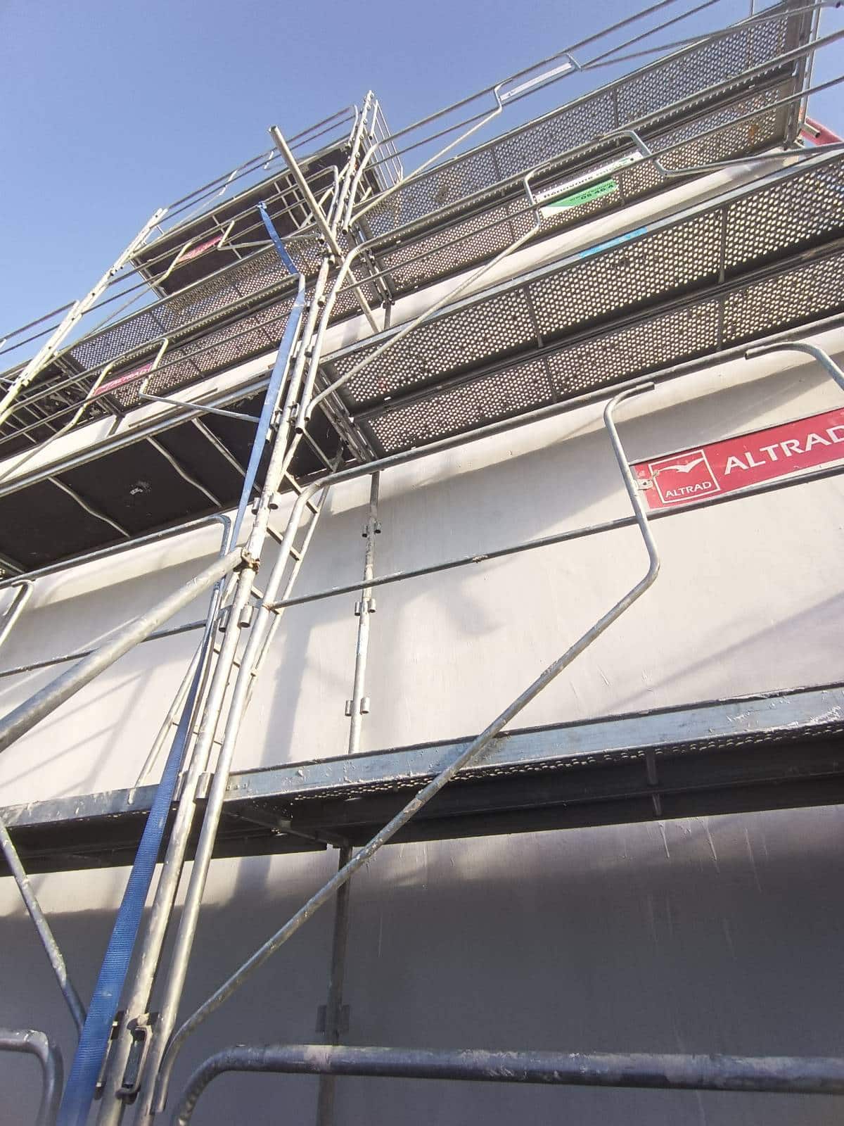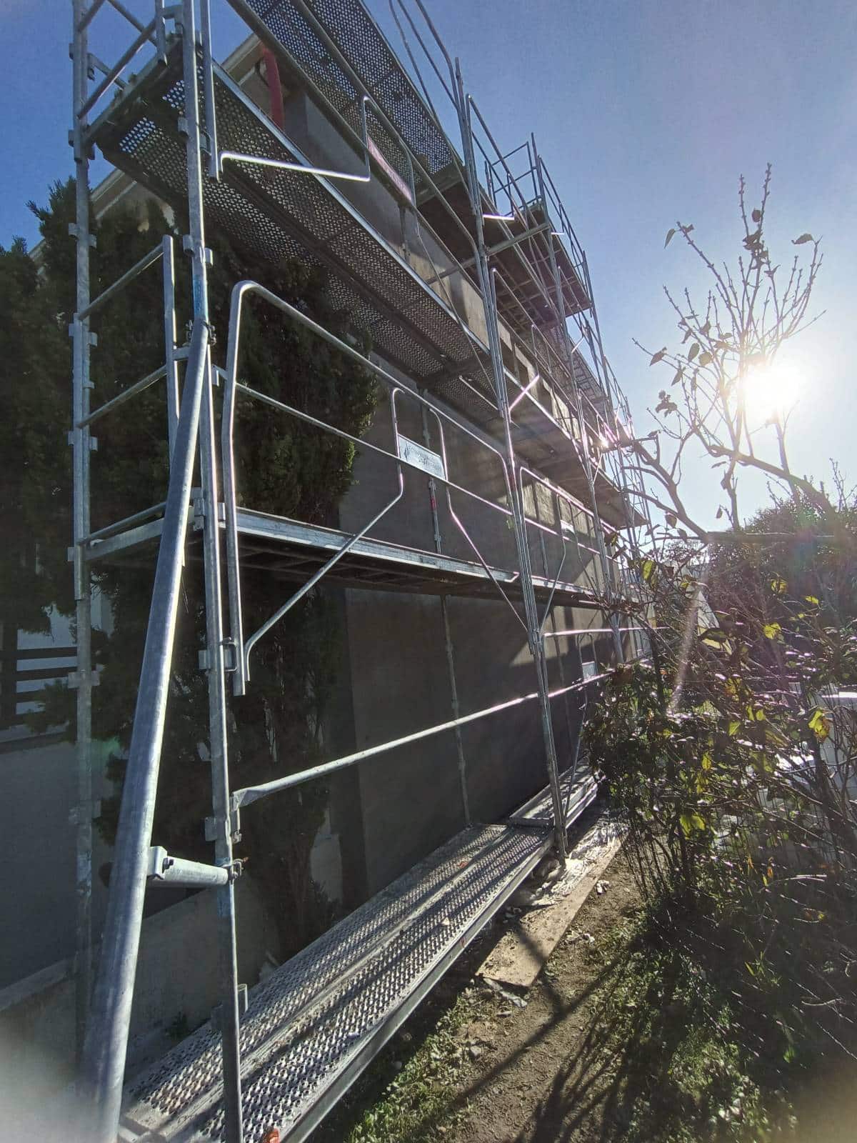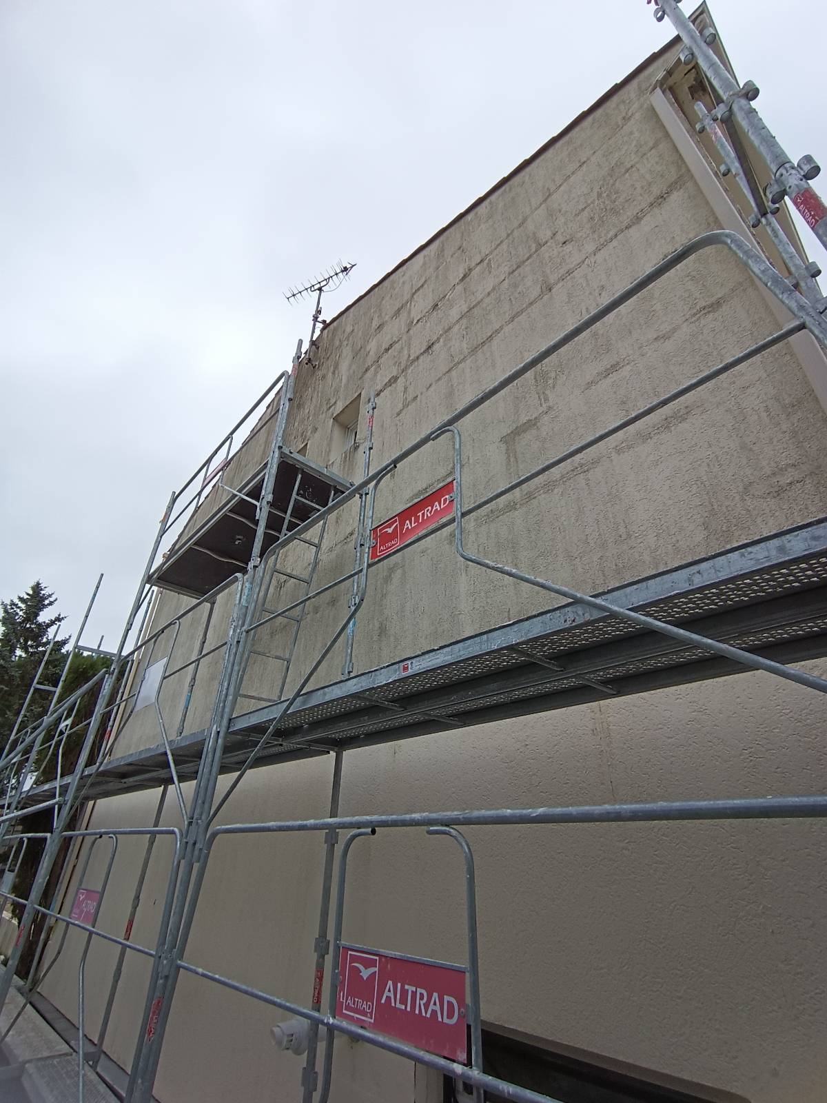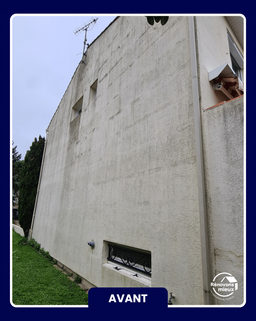Sur cette maison à un étage située à La Rochelle (17000), nous avons isolé 82 m² de façades en huit jours. Après la pose de l’échafaudage, les murs ont été préparés puis recouverts de panneaux en polystyrène expansé Knauf, fixés et chevillés avant application du sous-enduit et de la finition. Les tableaux et les points singuliers ont été traités pour assurer une continuité de l’isolation.